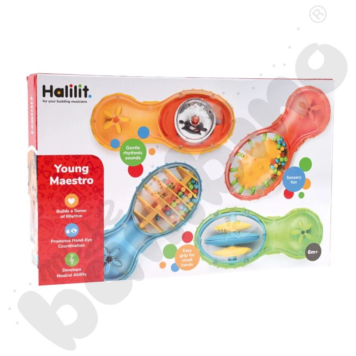Introduce your little one to the joys of music-making with this bright and colourful gift set. With four vibrant shakers that each offer a unique sound and sensory experience, the Halilit Young Maestro Gift Set is designed to encourage musical exploration in babies as young as six months.