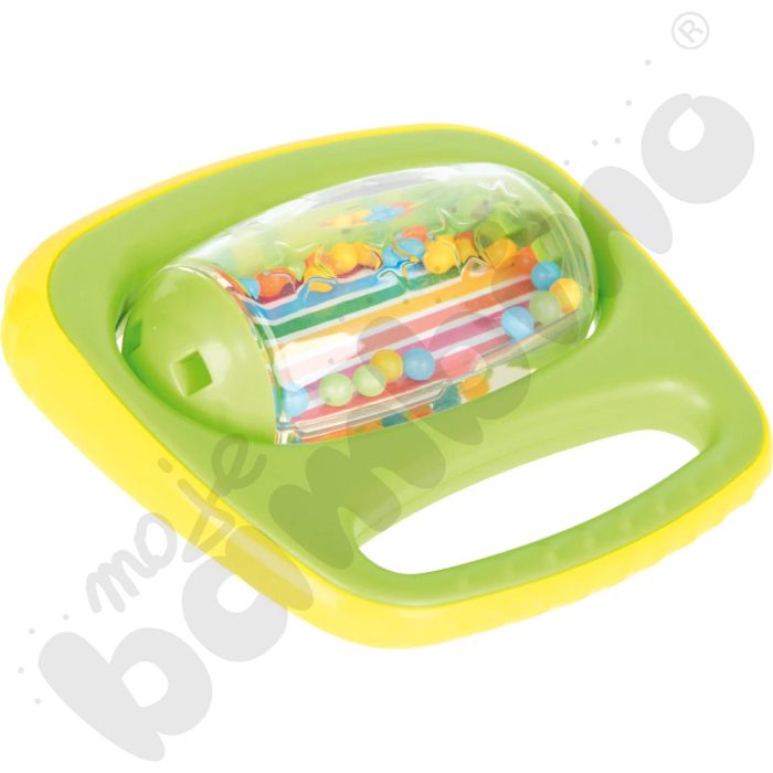 Securely enclosed, brightly coloured beads create gentle cascading sounds when rolled