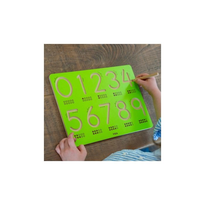 Each number has an arrow to help children understand which direction to move their pencil in order to form each number. The gently engraved curves and grooves make it ideal for children to control their hand movements and form muscle memory through repeated tracing.
